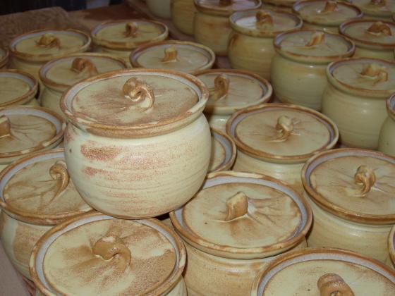 Every year since 1984 Mud Sweat and Tears has had a contract with Nicola Valley Apiaries to produce between 4000 - 5000 honey pots.
